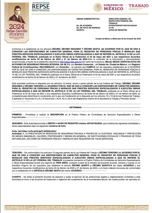 Se caracteriza por contar con personal calificado y comprometido con la seguridad de sus clientes.
